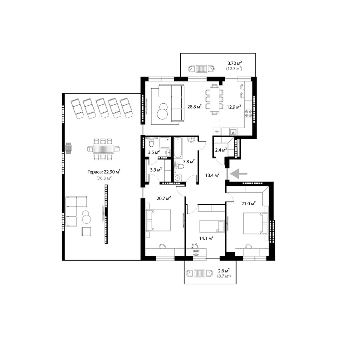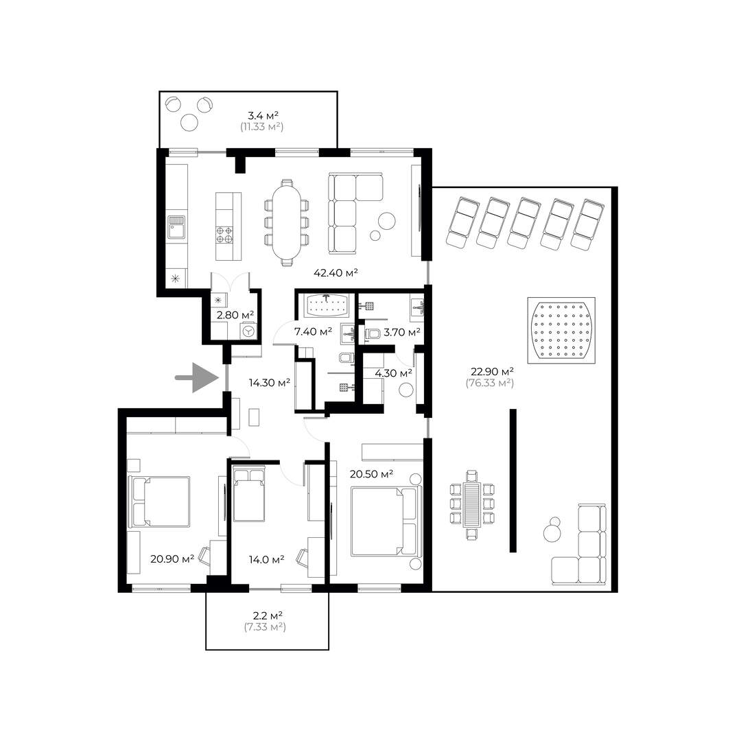 - 4-кімнатні ≈ 158 м² — варіант для тих, хто прагне простору й статусу.
