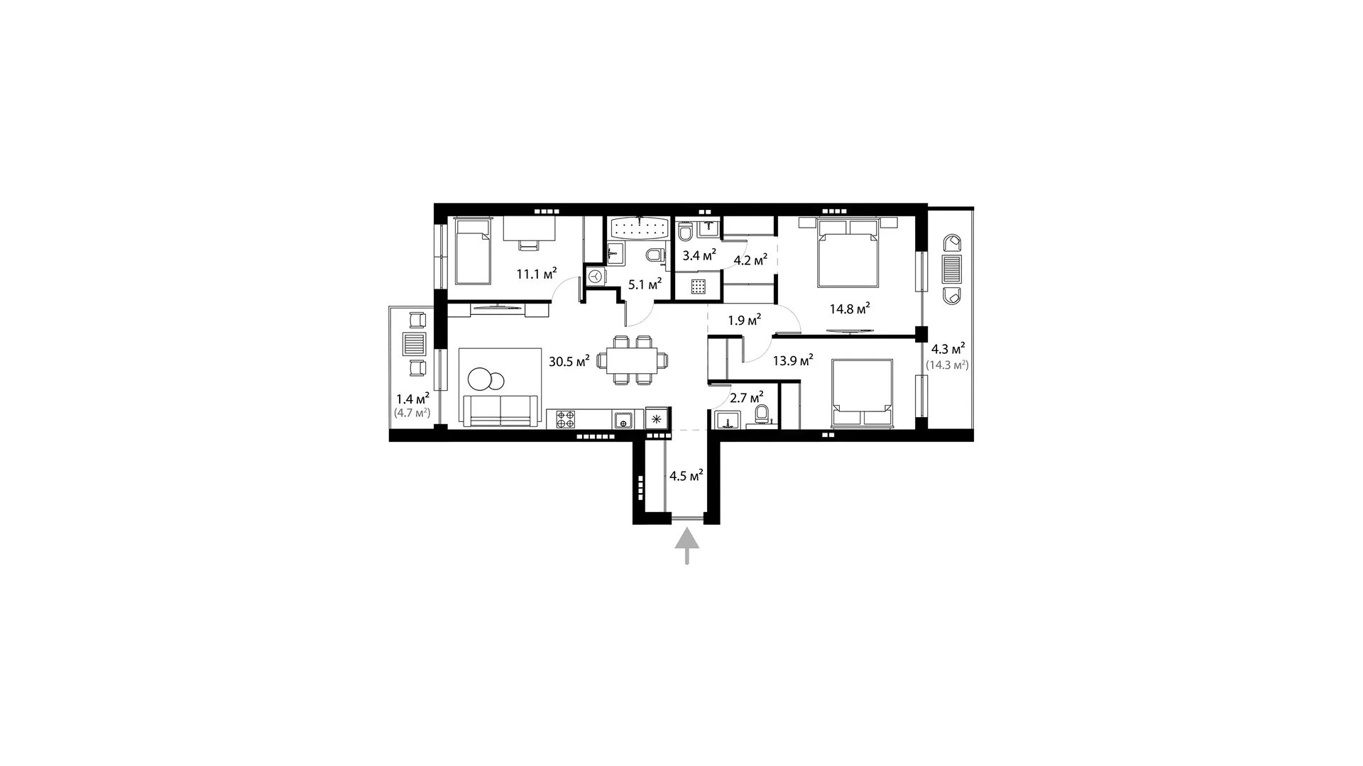 - 3-кімнатні ≈ 98 м² — ідеальні для родин з дітьми;